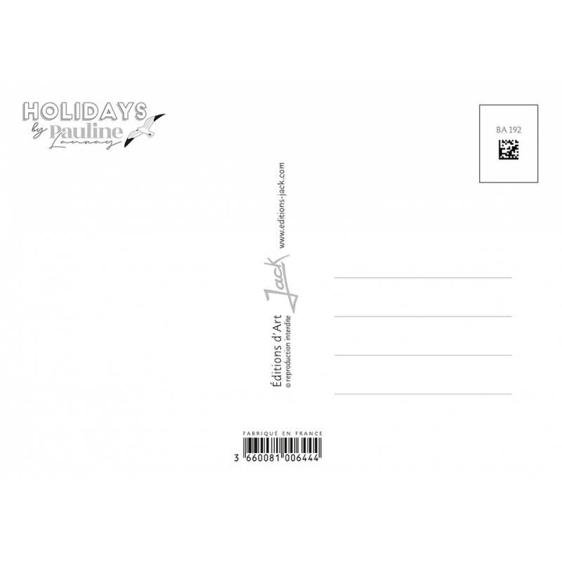 La collection de carte postale "Holidays"de Pauline Launay vous fera voyager sur nos côtes Françaises, dans un esprit Bord de Mer aux jolies couleurs pastels. Souvenir de vacances, future destination, vous trouverez certainement la carte postale qui vous séduira !
