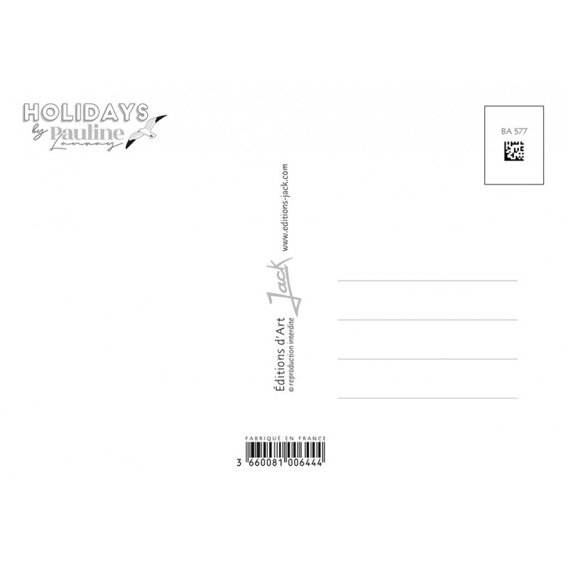 La collection de carte postale "Holidays" de Pauline Launay vous fera voyager sur nos côtes Françaises, dans un esprit Bord de Mer aux jolies couleurs pastels. Souvenir de vacances, future destination, vous trouverez certainement la carte postale qui vous séduira !