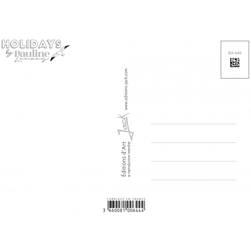 La collection de cartes postales "Holidays" de Pauline Launay vous fera voyager sur nos côtes Françaises, dans un esprit Bord de Mer aux jolies couleurs pastels. Souvenir de vacances, future destination, vous trouverez certainement la carte postale qui vous séduira !