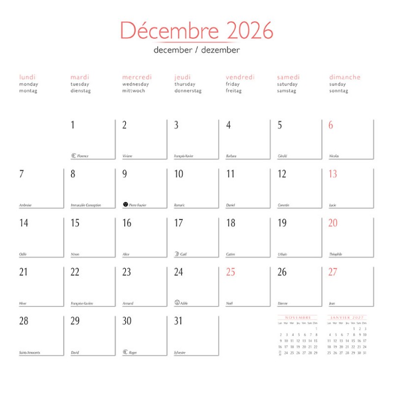 Calendrier 30 x 30